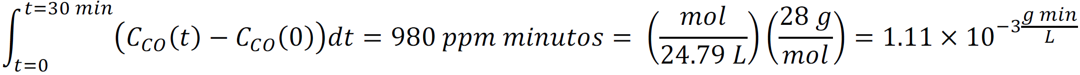 Figura C.3 - Concentraciones variables en el tiempo de CO2 y CO en el tubo de muestra