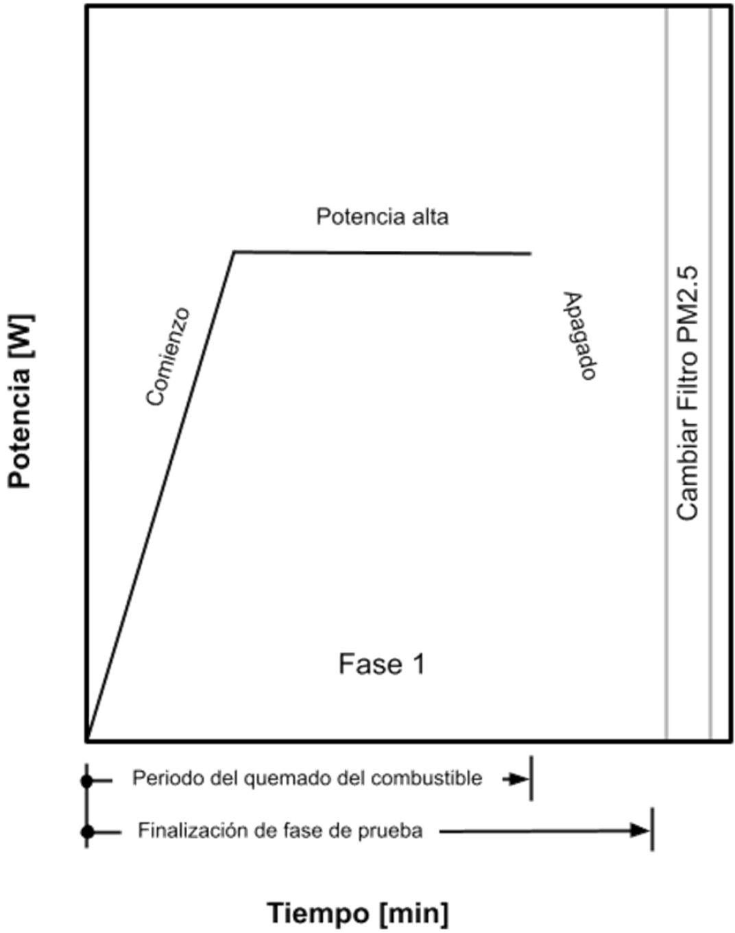 Figura 1 - Diagrama de la secuencia de la prueba estándar para estufas con un solo nivel de potencia