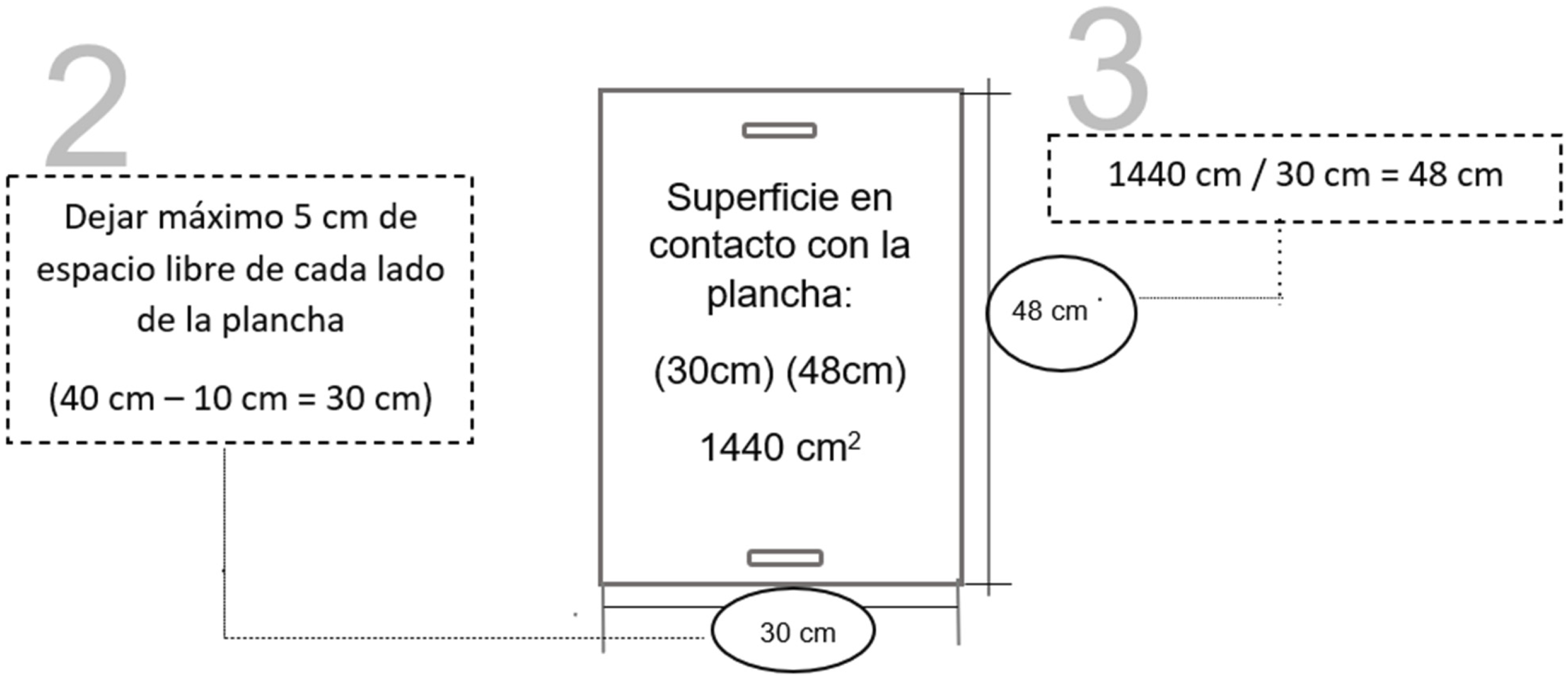 Figura E.3 - Ejemplo de las dimensiones de la superficie de la olla de BoPET en contacto con la superficie de la plancha de 40 cm por 60 cm